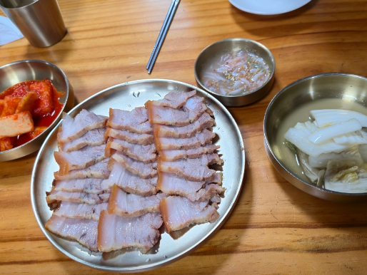 • 재료: 돼지 삼겹살 또는 앞다리살 600g, 대파 1대, 양파 1/2개, 통마늘 10알, 통후추 10알