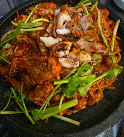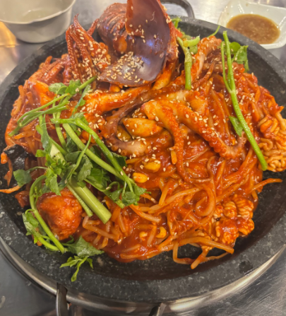| 돌판 해물아귀찜 요리 한 상 | 갑오징어, 낙지, 전복, 아귀 등 신선한 해물이 가득한 대표 메뉴 | 55,000원 |