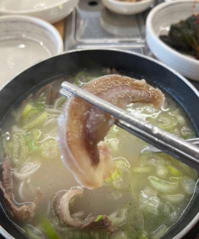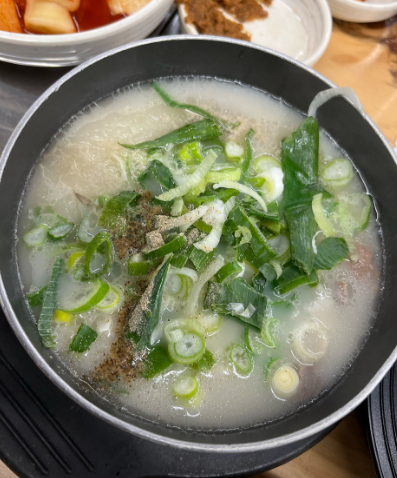 - 재료: 한우 사골 1kg, 잡뼈 1kg, 사태 또는 양지 600g, 통생강 1톨, 통마늘 10알, 대파 2대