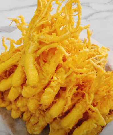 - 4. 170~180도 기름에서 짧고 굵게 튀겨낸 뒤 조청에 찍어 드세요.