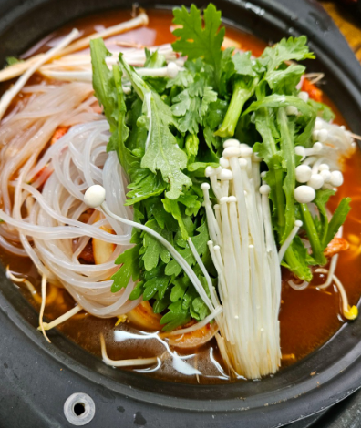 - 4. 마지막에 불을 끄고 미나리를 듬뿍 얹어 잔열로 숨을 죽이면 완성입니다.
