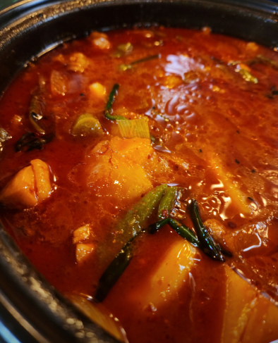 - 재료: 오돌뼈 300g, 양파, 대파, 고추장 2큰술, 고춧가루 2큰술, 간장 1큰술, 다진 마늘 1큰술, 올리고당 1큰술, 불맛 소스 약간