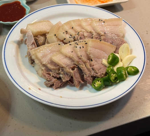 - 수육 삶기: 물에 된장 1큰술, 마늘, 대파를 넣고 끓입니다. 물이 끓으면 고기를 넣고 40분간 푹 삶아냅니다. 이것이 김미령 도봉 이모카세 1인 맛집 50,000원 메인 안주의 기초입니다.