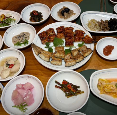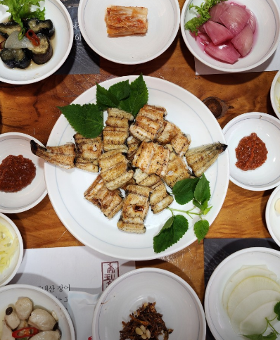 향옥정의 자존심이라 할 수 있는 메뉴는 향옥장어와 선암장어입니다. 김해 낙동강 3대째 장어구이 중에서도 가장 두툼한 육질을 자랑하는 향옥장어는 300g 기준으로 제공되어 든든한 식사가 가능합니다. 이곳의 김해 낙동강 3대째 장어구이 특징은 양념이 자극적이지 않으면서도 장어 특유의 비린내를 완벽하게 잡아냈다는 점입니다. 김해 낙동강 3대째 장어구이 한 상을 주문하면 나오는 정갈한 밑반찬들 또한 장어의 맛을 돋워주는 일등 공신입니다.