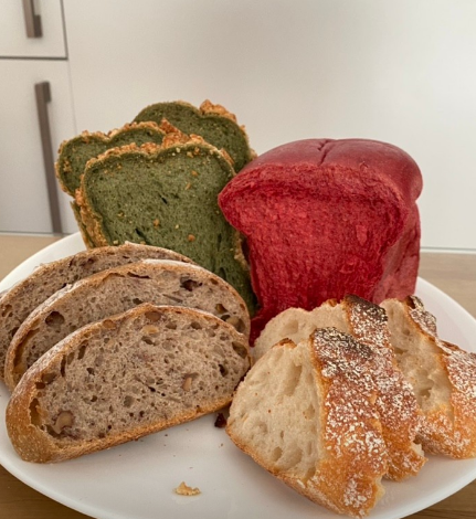 - 재료: 통밀가루 400g, 따뜻한 물 300ml, 드라이이스트 4g, 소금 6g, 꿀 1T