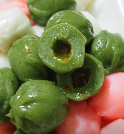 - 1. 볼에 찹쌀가루, 소금, 설탕을 넣고 따뜻한 물을 부어 가며 섞어줍니다.